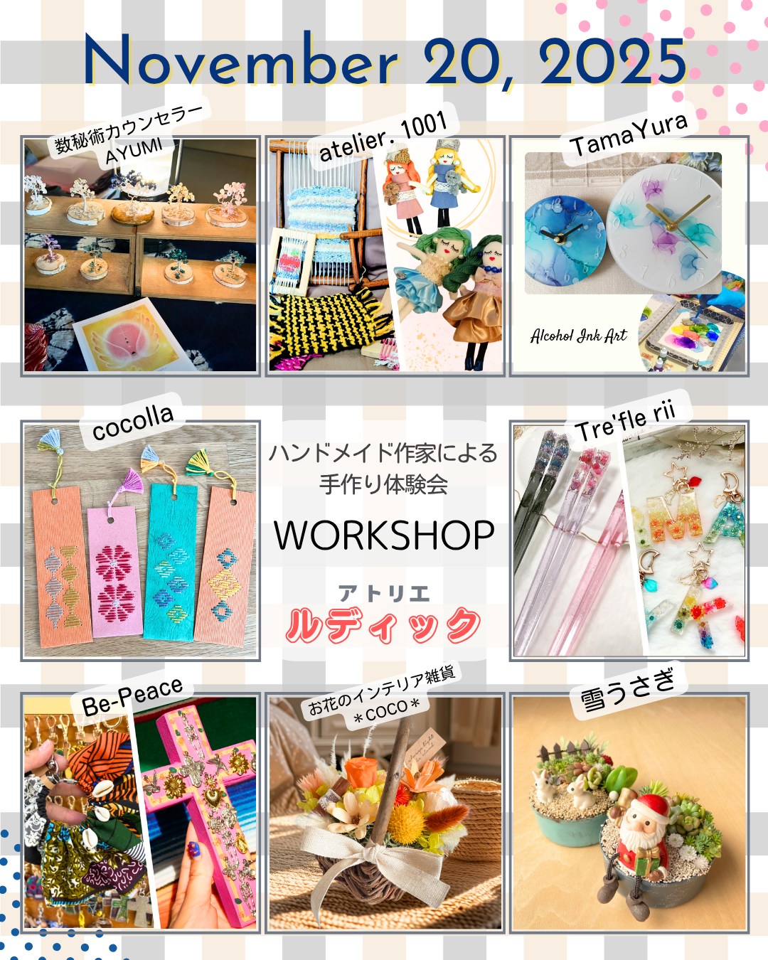ワークショップイベント「~こころはずむ てづくり体験~ アトリエ ルディック」11月開催のお知らせ