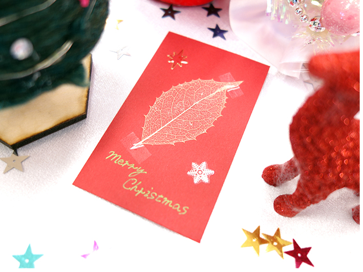 - ヒイラギの葉脈を取り出してしおりをつくります。