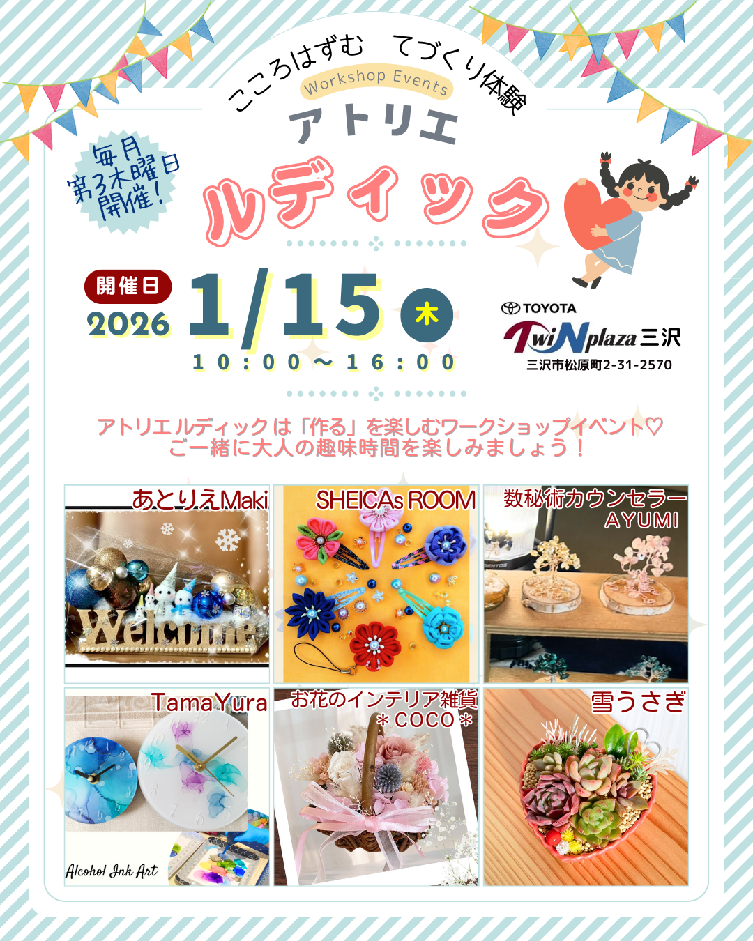 ワークショップイベント「~こころはずむ てづくり体験~ アトリエ ルディック」1月開催のお知らせ